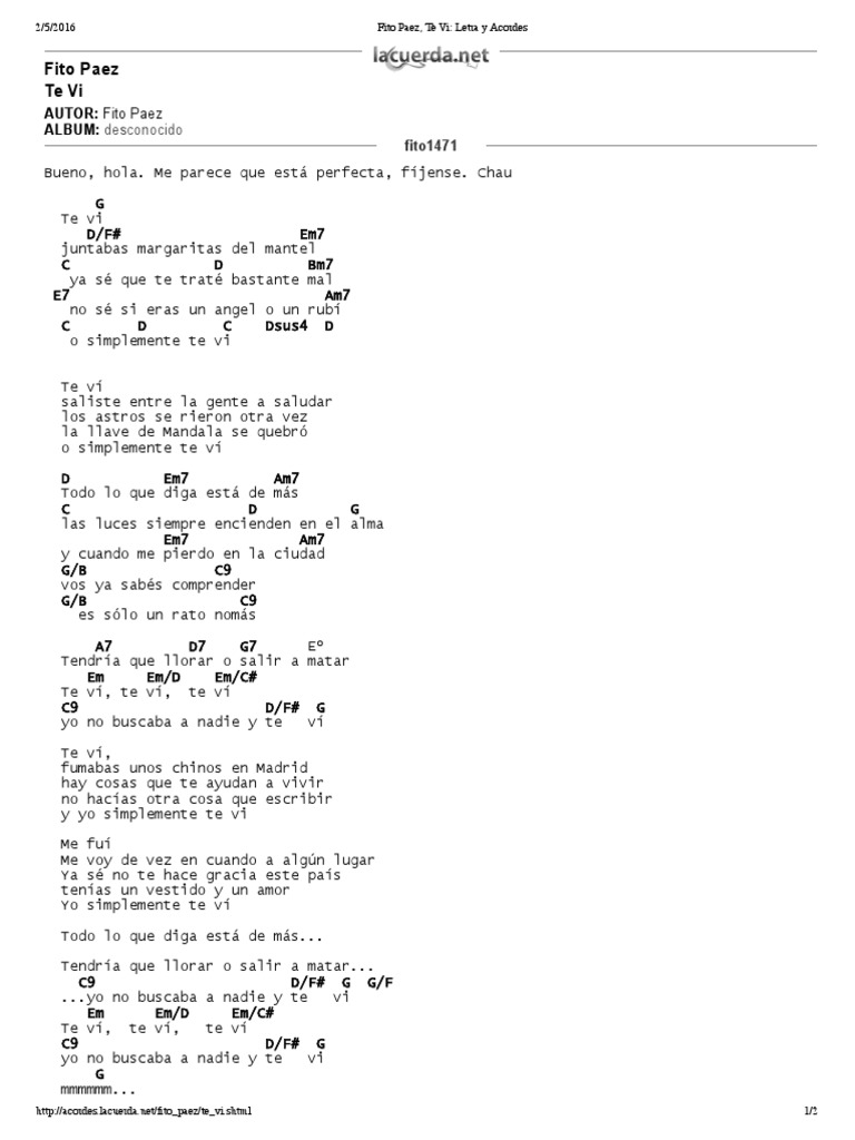 Margarita Fito Paez Letra : En el video, ella aparece dirigiendo, muy humorísticamente, un ensayo de la banda, para luego dar comienzo a la música.